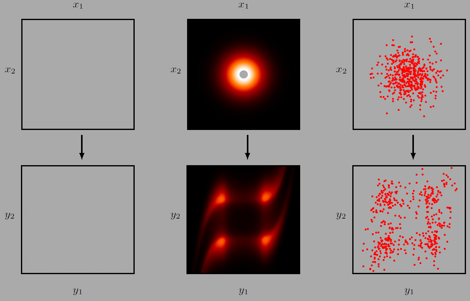 따라서 상호 정보는 \(\mathbf{y}\) 의 값을 알려줌으로써 감소하는 \(\mathbf{x}\) 의 불확실성을 표현한다. 베이지안 관점에서는 \(p(\mathbf{x})\)\(\mathbf{x}\) 에 대한 사전 분포이고, \(p(\mathbf{x}|\mathbf{y})\) 는 새로운 데이터 \(\mathbf{y}\) 를 관찰한 이후의 사후 분포이다. 따라서 상호 정보를 새로운 관찰 \(\mathbf{y}\) 의 결과로 감소되는 \(\mathbf{x}\) 의 불확실성이라고 할 수 있다.